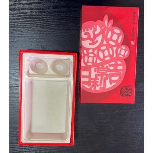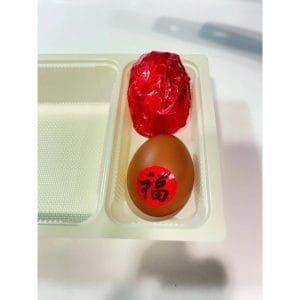 大約可裝一斤半的油飯 + 兩顆紅蛋